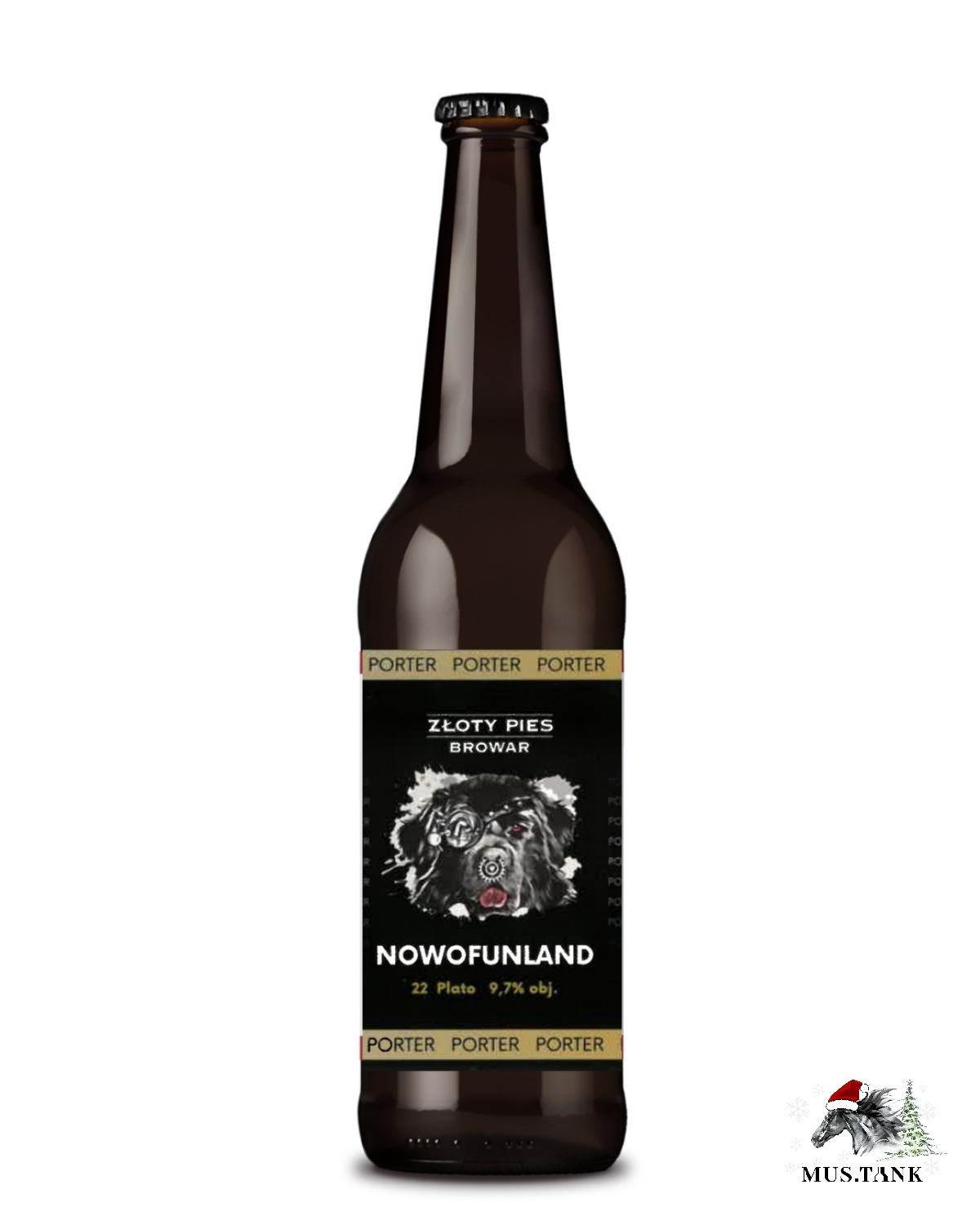 • piwo kraftowe Nowofunland Porter 330 ml, ozdobione uroczą czapeczką Mikołaja, która wprowadza świąteczny nastrój. [Opis produktu]