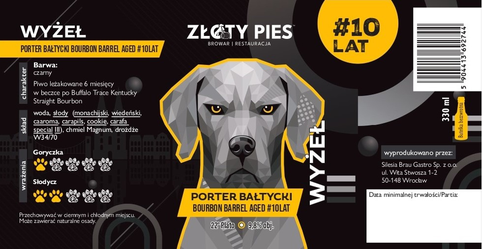 to wyjątkowe wydanie przygotowane z okazji 10-lecia Browaru Złoty Pies. Symbolizuje doświadczenie, pasję i rzemieślniczy kunszt budowany przez lata. Projekt nawiązuje do klasyki gatunku – szlachetnego, głębokiego portera bałtyckiego, który od lat pozostaje jednym z najbardziej cenionych stylów piwnych w Polsce. Limitowana edycja dla kolekcjonerów i miłośników wyjątkowych historii zamkniętych w butelce.